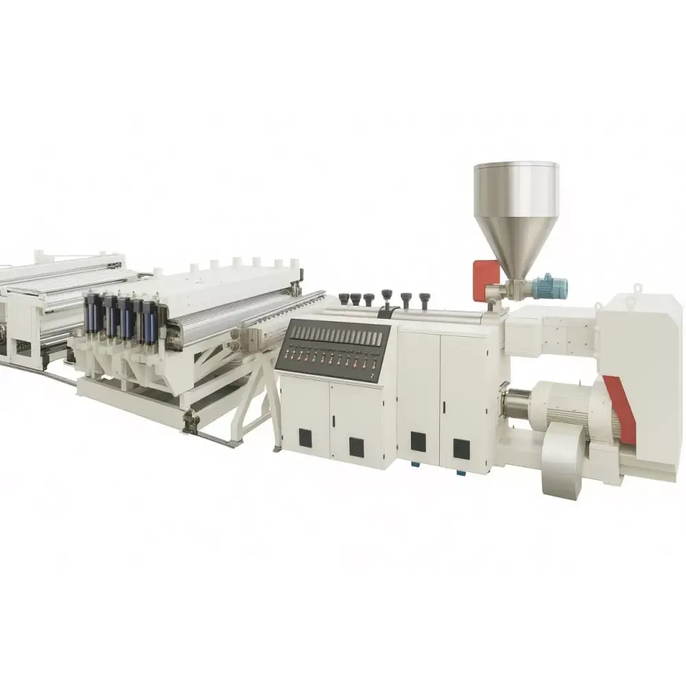 Pre World 고품질 PVC 폼 시트 보드 제작 기계는 트윈 스크류 압출 기술을 활용하여 PVC 재료의 균일한 가소화 및 제어된 발포를 달성합니다. 이 장비는 정밀하게 제어되는 온도 영역과 압력 매개변수를 사용하여 특정 밀도 분포를 갖는 폐쇄 셀 폼 구조를 형성합니다. 제조 공정에는 재료 준비, 용융 혼합, 화학 발포제를 사용한 셀 형성, 교정 냉각 및 정밀한 크기 조정이 포함되며 궁극적으로 특정 표면 특성과 기계적 특성을 가진 견고한 시트를 생산합니다.